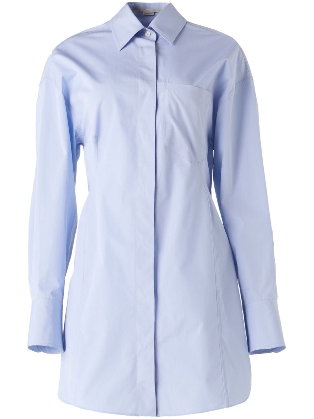 cotton-poplin shirt dress Highlights - Sky blue - Cotton - Poplin texture - Classic collar - Long sleeves - Buttoned cuffs - Chest patch pocket - Concealed front fastening - Curved hem Imported Composition Cotton 100%