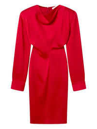 cowl-neck draped midi dress Highlights - Red - Cowl neck - Draped bodice - Long sleeves - Rear centre-vent Made in Italy Composition Recycled Polyester 73%, Silk 27% Washing instructions Read Manufacturer Guidelines