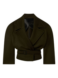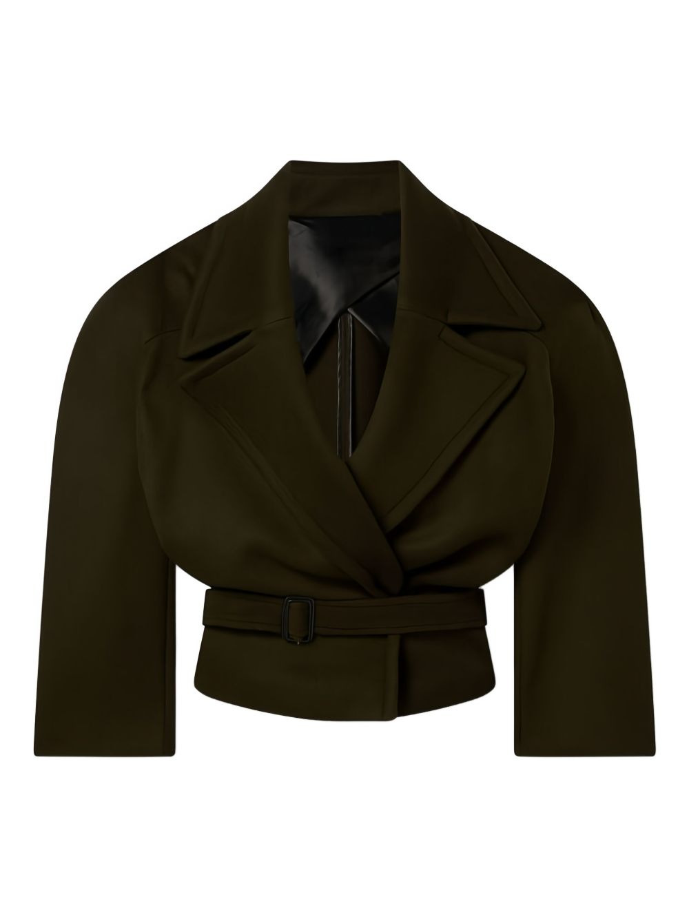 cropped belted jacket Highlights - Dark khaki - Notched lapels - Double-breasted - Belt - Buckle fastening Imported Composition Wool 100%
