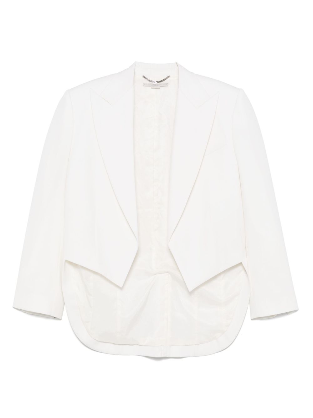 cropped blazer Highlights - Light beige - Buttoned cuffs - American rear vent - Full lining - Peak lapels Imported Composition Outer: RWS Wool 97%, Elastane 3% Lining: Viscose 52%, Cotton 48% SIZE & FIT Model measurements Height 5 ft 11 in(1.8 m) Bust/Chest 32.67 in(83 cm) Hips 35.82 in(91 cm) Waist 25.98 in(66 cm) FittingInformation Designed to be unstructured, offering a loose fit throughout The internal shoulder pads offer a structured shape Made from a midweight fabric