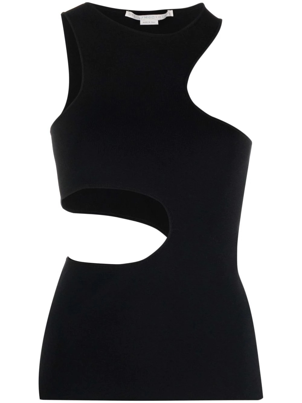 cut-out tank top With a fine-knit construction in an all-black colourway, this tank top from Stella McCartney boasts a bold cut-out design. Highlights - Black cut-out tank top from stella mccartney featuring cut-out detailing, high neck, sleeveless and slim cut. . Made in Italy Composition Viscose 83%, Polyester 17% SIZE & FIT Model measurements Height 5 ft 10 in(1.77 m) Bust/Chest 35.03 in(89 cm) Hips 35.03 in(89 cm) Waist 23.62 in(60 cm) Measurement BUST 24.01 in(61 cm) LENGTH 22 in(55.9 cm) WAIST 25 in(63.5 cm) FittingInformation This piece fits true to size. We recommend you get your regular size Cut for a slim fit Made with a mid-weight fabric Washing instructions Dry Clean Only