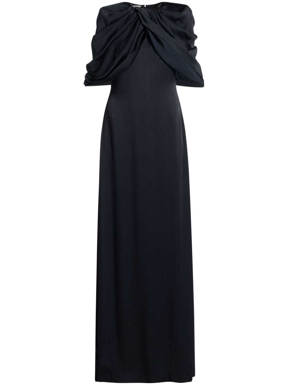 draped-sleeve dress Highlights - Black - Satin weave - Crew neck - Concealed rear zip fastening - Short draped sleeves - Floor-length - Straight hem Made in Italy Composition Viscose 100%