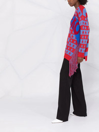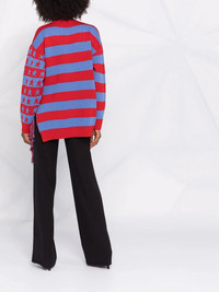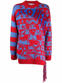 Eco Hero intarsia jumper Stella McCartney fashions contemporary offerings for the modern woman without eschewing the ethical ambitions that the brand was built on. Made from virgin wool, this striped jumper is detailed with an 'Eco Hero' intarsia design, referencing the label's eco-conscious mindset. Highlights - Red/blue - Virgin wool - Horizontal stripe pattern - 'eco hero' intarsia knit - Fringe detailing - Crew neck - Long sleeves - Ribbed edge - Oversized style Made in Italy Composition Virgin Wool 100% SIZE & FIT Model measurements Height 5 ft 10 in(1.78 m) Bust/Chest 31.49 in(80 cm) Hips 37 in(94 cm) Waist 23.62 in(60 cm) Measurement SLEEVE LENGTH 18.89 in(48 cm) Shoulder Width 45.66 in(116 cm) LENGTH 43.3 in(110 cm) FittingInformation This piece fits true to size. We recommend you get your regular size Cut for a loose fit Made with a mid-weight fabric Washing instructions Dry Clean Only