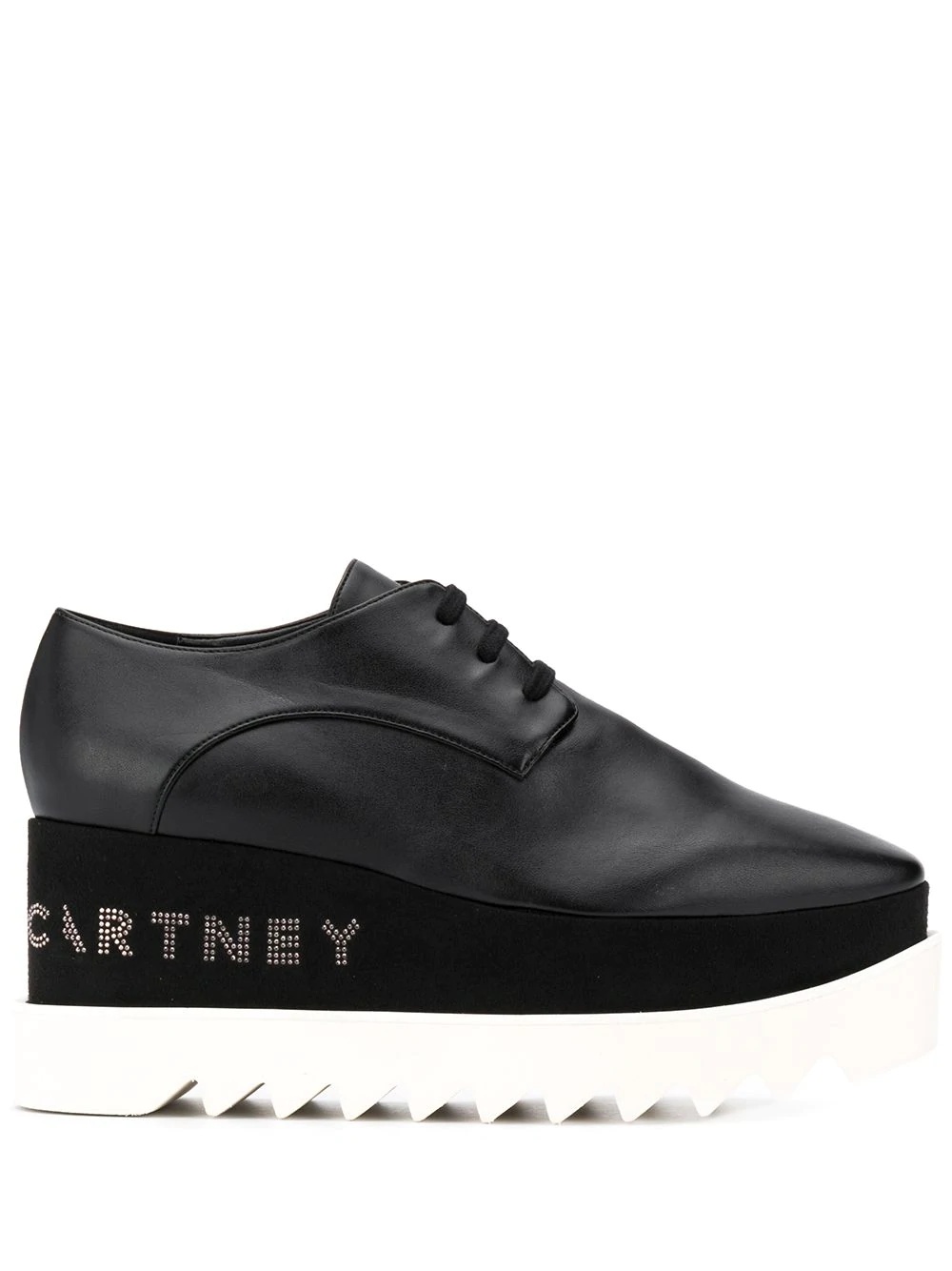 Elyse platform shoes Highlights - Technical fabrics, block colours, precision cuts and refined tailoring are integral to stella mccartney’s brand aesthetic. these driving forces of the quirky british brand have rooted stella firmly at the forefront of luxury, sustainable fashion and these black elyse studded lace-up shoes are a perfect example of that. featuring a lace-up front fastening, a square toe, a platform sole, a ridged rubber sole, rounded stud embellishments, a branded insole and a logo to the back. Made in Italy Composition Other fibres 100% SIZE & FIT Measurement HEEL 3.14 in(8 cm) Sole height 1.96 in(5 cm)