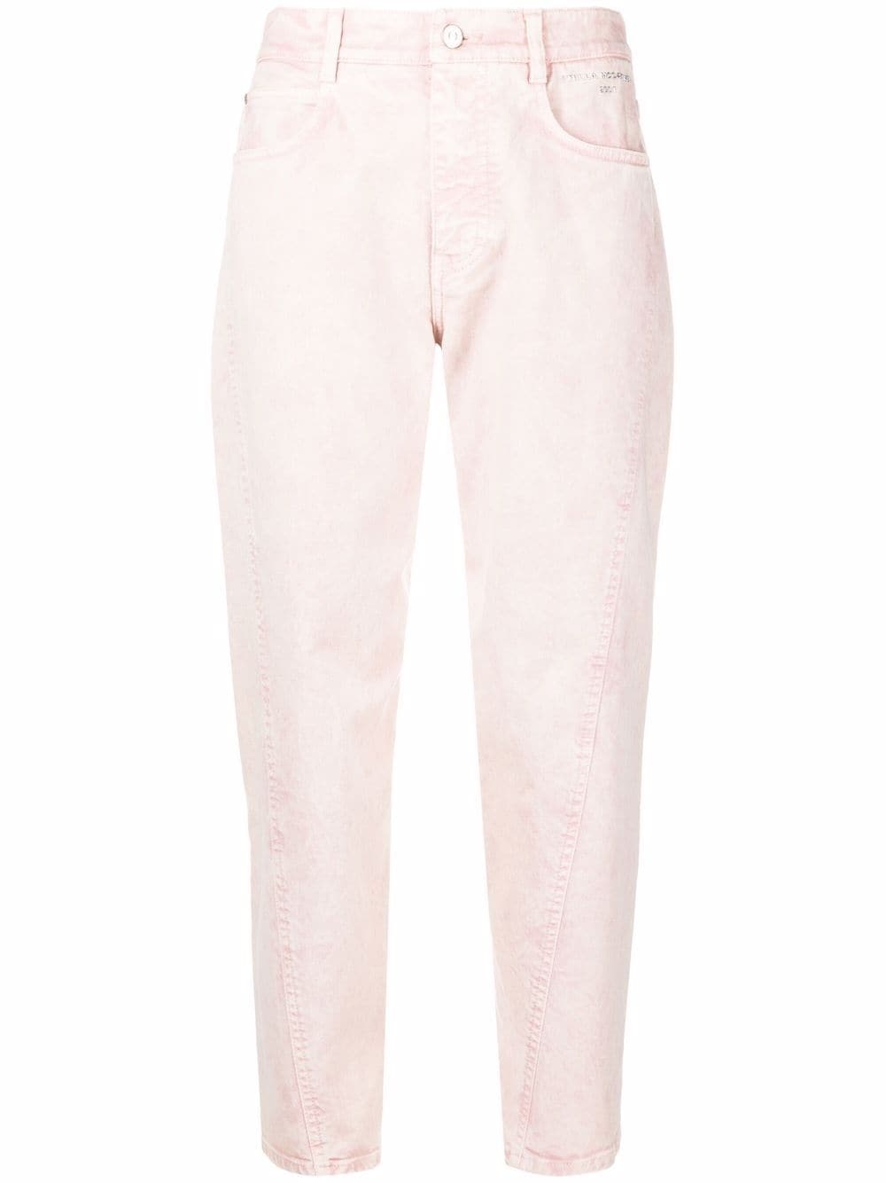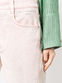 faded cropped jeans Capturing the bright tones consistent with summer styling, Stella McCartney's SS22 collection includes these cropped jeans. With a faded pink exterior, this design perfectly showcases the brand's bold new direction. Highlights - Pale pink - Cotton-denim - Faded effect - Silver-tone logo plaque - Logo patch to the rear - Classic five pockets - Cropped leg Made in Italy Composition Cotton 100% SIZE & FIT Model measurements Height 5 ft 10 in(1.78 m) Bust/Chest 31.49 in(80 cm) Hips 36.22 in(92 cm) Waist 25.59 in(65 cm) Measurement FRONT RISE 10.43 in(26.5 cm) HIPS 37.79 in(96 cm) WAIST 30.31 in(77 cm) Washing instructions Dry Clean Only