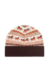 Fair Isle horse-pattern label beanie