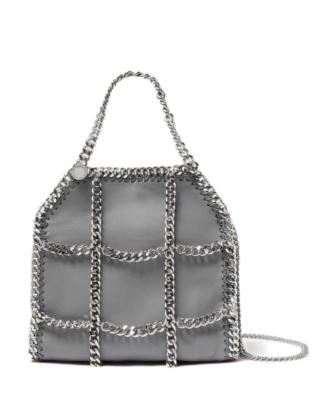Falabella Chain Cage tote bag Highlights - Medium grey - Magnetic fastening - Two chain-link top handles - Chain-link shoulder strap - This is a limited edition piece. Made in Italy Composition Outer: Polyester 100% SIZE & FIT Measurement DEPTH 3.9 in(9.9 cm) HEIGHT 10.4 in(26.4 cm) WIDTH 9.3 in(23.6 cm)