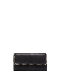 Falabella continental flap wallet Stella McCartney reimagines the signature chain-trimmed Falabella style with every new collection. Here, it is realised in a silver-tone finish, trimming this faux-leather continental wallet and intertwined with the trademark whipstitch detailing. Highlights - Black - Faux leather - Signature diamond-cut chain-link trim - Whipstitch detailing - Silver-tone hardware - Front flap closure - Press-stud fastening - Internal card slots - Note compartment - Internal zip-fastening pocket Made in Italy Composition Fabric 100%
