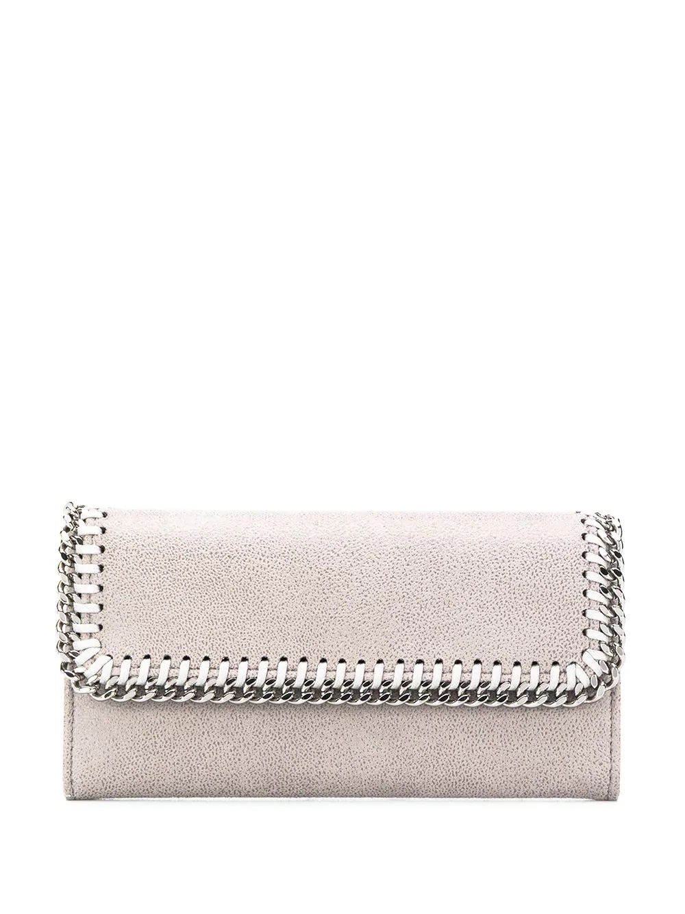 Falabella continental wallet Highlights - A place for everything and everything in its place. detailed with a signature silver-tone chain trim, this grey falabella continental wallet from stella mccartney is the perfect accessory to keep your cards and cash organised in great style. don't let it get away! featuring a foldover top with snap closure, multiple interior card slots, a note compartment, an interior zipped compartment and silver-tone hardware. Made in Italy Composition Outer: Brass 100%, Polyester 100% Polyester 100% SIZE & FIT Measurement WIDTH 4.13 in(10.5 cm) DEPTH 0.98 in(2.5 cm) LENGTH 7.67 in(19.5 cm)