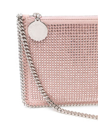 Falabella shoulder bag Highlights - Powder pink - Faux suede - Glass crystal embellishment - Top zip fastening - Branded zip puller - Chain-link shoulder strap - Whipstitch chain trim - Whipstitch trim - Main compartment - Logo-jacquard lining - This piece comes complete with a protective dust bag. Made in Italy Composition Outer: glass 100%, Polyurethane 100% SIZE & FIT Model measurements Height 5 ft 9 in(1.75 m) Bust/Chest 31.88 in(81 cm) Hips 34.64 in(88 cm) Waist 24.01 in(61 cm) Measurement DEPTH 0.78 in(2 cm) HEIGHT 5.51 in(14 cm) STRAP 20.86 in(53 cm) WIDTH 9.44 in(24 cm)