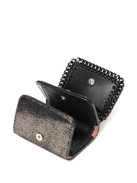 Falabella tri-fold wallet Highlights - Black - Press-stud fastening - Internal flap pocket - Internal card slots - Logo-engraved bezel Made in Italy Composition Outer: Artificial Leather 100% SIZE & FIT Measurement DEPTH 1.1 in(2.7 cm) LENGTH 2.9 in(7.3 cm) WIDTH 3.9 in(9.9 cm)