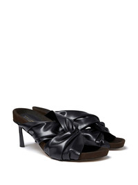 twist-detail sandals Stella McCartney's mules are crafted from a gathered faux-leather upper and are set atop a moulded footbed and a sculpted heel. Highlights - Black - Gathered detailing - Round open toe - Slip-on style - Branded insole - Moulded footbed - High sculpted heel Made in Italy Composition Outer: Polyester 51%, Alfa 49% Lining: Polyester 51%, Alfa 49% Sole: Rubber 100%