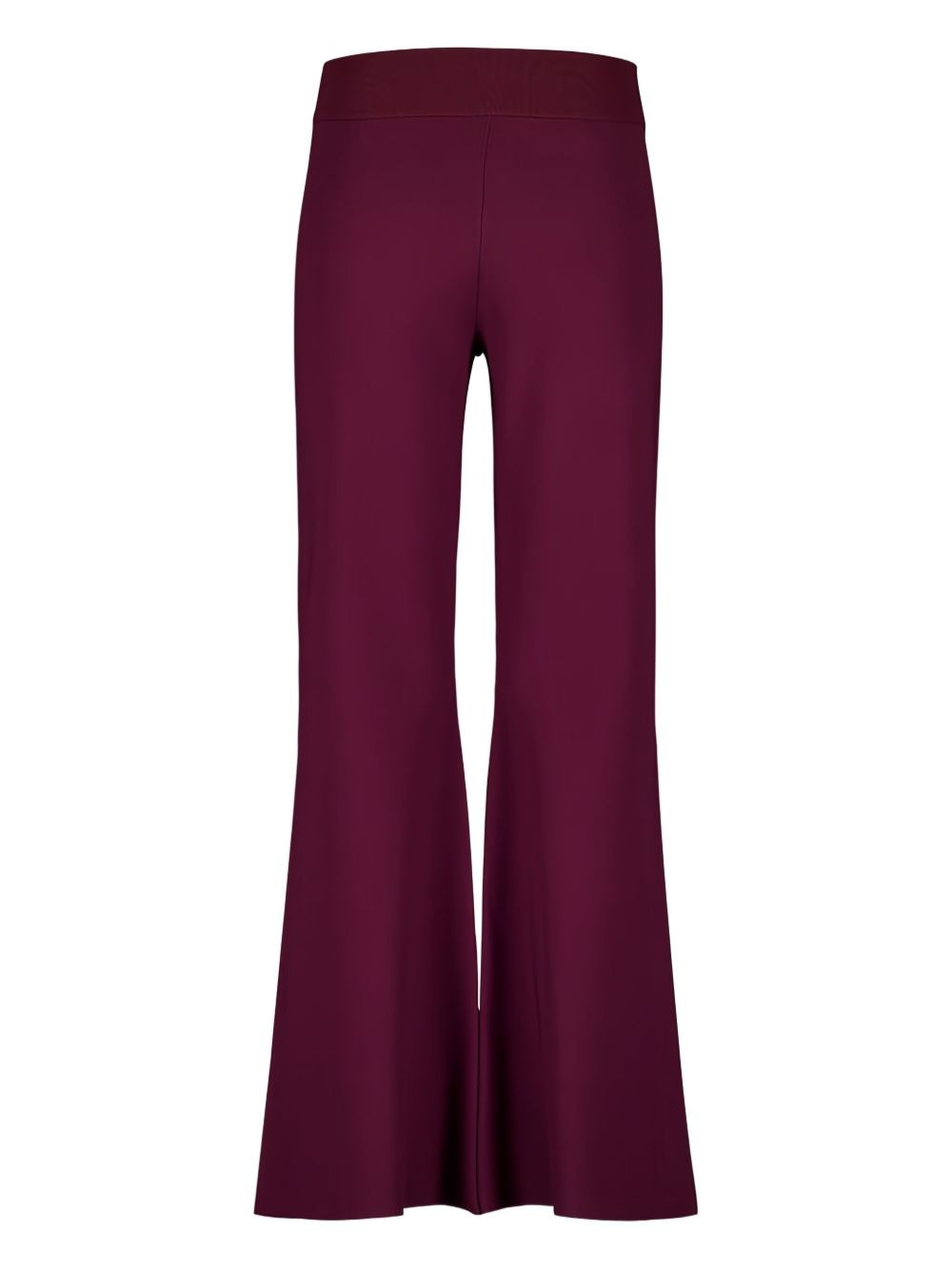 fine-knit trousers Highlights - Burgundy - Compact knit - Flare leg - High waist - Elasticated waistband Made in Italy Composition FSC Viscose 83%, Polyester 17% Washing instructions Read Manufacturer Guidelines