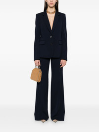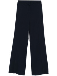 flared trousers Highlights - Navy blue - Concealed front button, hook and zip fastening - Two front welt pockets Imported Composition Wool 97% SIZE & FIT Model measurements Height 5 ft 10 in(1.78 m) Bust/Chest 33.85 in(86 cm) Hips 36.61 in(93 cm) Waist 26.77 in(68 cm) FittingInformation Designed with a flared hem, these trousers allow for a close fit at the waist with a slim fit over the leg and widening towards the hem The unfinished hems allow for the length to be altered Made from a midweight non-stretch fabric