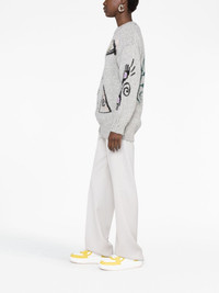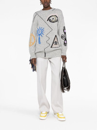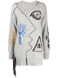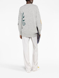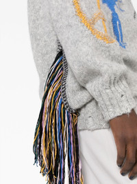 Folk graphic-embroidered jumper Highlights - Grey/multicolour - Alpaca wool-blend/organic cotton - Distressed effect - Embroidered design - Crew neck - Drop shoulder - Long sleeves - Straight hem - Ribbed trim - Draped tassel detailing Made in Italy Composition Organic Cotton 100%, Alpaca 70%, Nylon 23%, Wool 7% SIZE & FIT Model measurements Height 5 ft 11 in(1.8 m) Bust/Chest 32.67 in(83 cm) Hips 36.22 in(92 cm) Waist 24.4 in(62 cm) FittingInformation Designed for a relaxed fit, this piece allows for comfort and movement when worn Made with a midweight knit, this piece offers some stretch This piece fits true to size – take your usual size Washing instructions Dry Clean Only