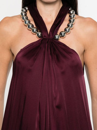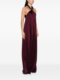 halterneck jumpsuit Highlights - Red bordeaux - Halterneck - Sleeveless - Chain embellishment - Side slit pockets - Wide leg Made in Italy Composition Acetate 73%, Viscose 27% SIZE & FIT Model measurements Height 5 ft 10 in(1.78 m) Bust/Chest 33.46 in(85 cm) Hips 36.22 in(92 cm) Waist 23.22 in(59 cm) Washing instructions Dry Clean Only