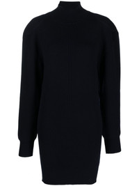 high-neck backless dress Highlights - Navy blue - Virgin wool blend - Ribbed knit - Backless - High neck - Long sleeves - Thigh-length - Straight hem Made in Italy Composition Virgin Wool 90%, Polyester 10% SIZE & FIT Model measurements Height 5 ft 11 in(1.8 m) Bust/Chest 31.49 in(80 cm) Hips 36.61 in(93 cm) Waist 24.4 in(62 cm) FittingInformation Designed for a close fit throughout Made with a midweight knit, this piece offers some stretch This piece fits true to size – take your usual size Washing instructions Hand Wash
