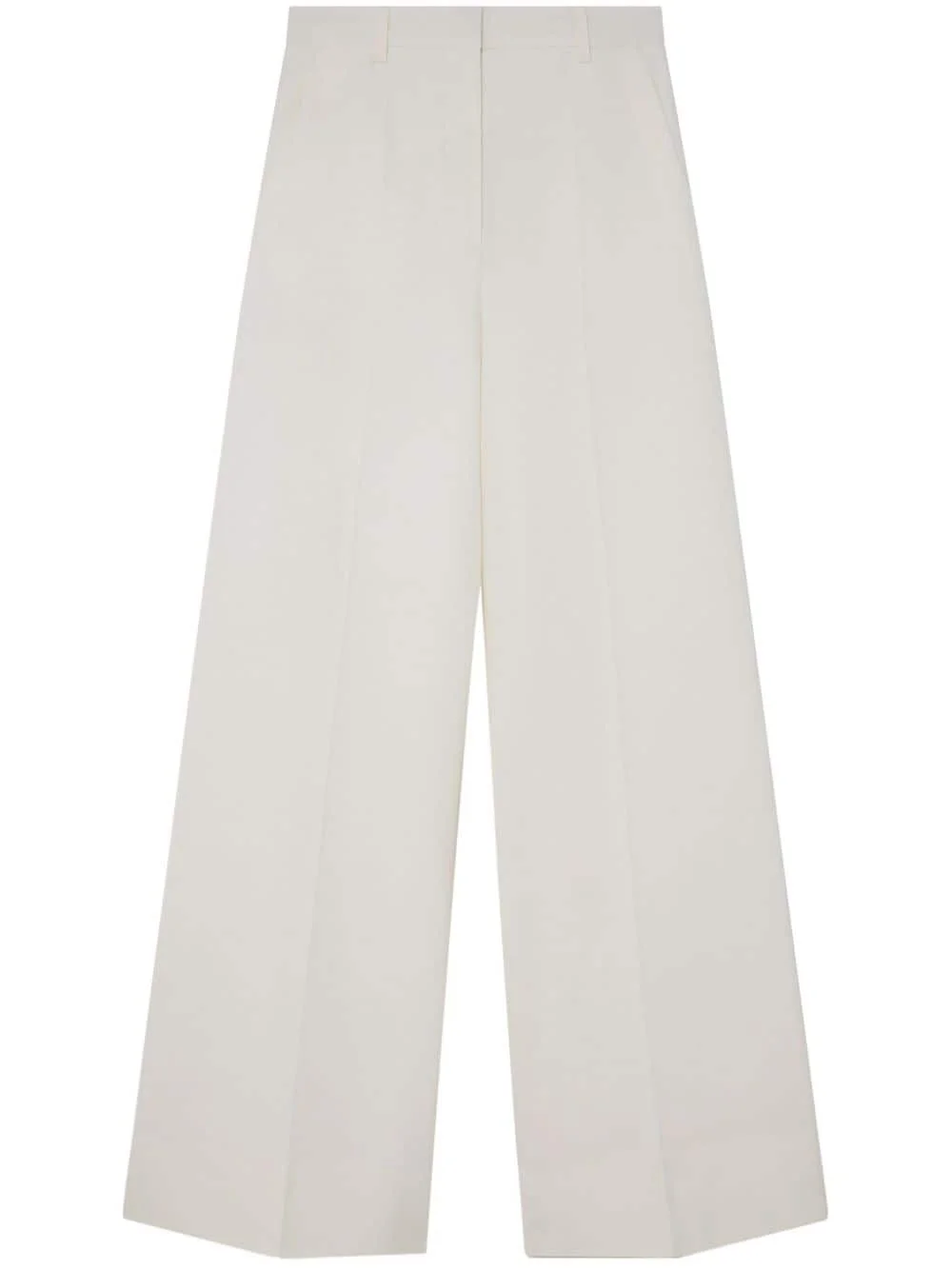 high-rise flared wool trousers Highlights - Cream white - Wool - High-rise - Flared - Pleat detailing - Concealed front zip fastening - Two side inset pockets Imported Composition Wool 100% SIZE & FIT FittingInformation Designed with a wide-leg cut, these trousers allow for a close fit at the waist and offer a loose and roomy fit over the leg Particularly long in length; consider your own measurements Made from a midweight fabric