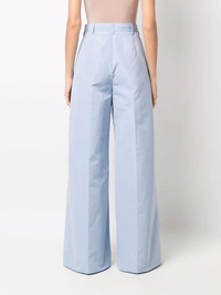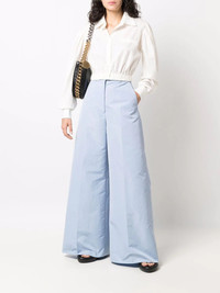 high-waisted wide-leg trousers Cut from a technical fabric, these wide-leg trousers from Stella McCartney present a contemporary take on tailoring. The blue-hued pair sits high on the waist, whilst pressed creases add a refined touch. Highlights - Light blue - Cotton-blend - High waist - Belted waist - Concealed front fastening - Two side inset pockets - Wide leg Imported Composition Outer: Recycled Polyester 100% Lining: Viscose 52%, Cotton 48% SIZE & FIT Model measurements Height 5 ft 10 in(1.79 m) Bust/Chest 33.07 in(84 cm) Hips 35.82 in(91 cm) Waist 24.01 in(61 cm) FittingInformation This piece fits true to size. We recommend you get your regular size Designed to be fitted at the waist and hips, loose over the leg Made with a mid-weight non-stretch fabric Washing instructions Dry Clean Only