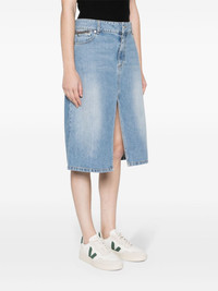Iconic Falabella chain-link denim skirt Highlights - Indigo blue - Cotton - Denim - Mid-rise - Contrast stitching - Whiskering effect at the thighs - Chain-link detailing - Logo patch to the rear - Embroidered logo to the rear - Belt loops - Front button and zip fastening - Classic five pockets - Front slit - Straight hem - Knee-length Imported Composition Lining: Polyester 52%, Cotton 48% Outer: Polyester 100%, Metal 100%, Cotton 100% SIZE & FIT Model measurements Height 5 ft 10 in(1.79 m) Bust/Chest 32.67 in(83 cm) Hips 34.25 in(87 cm) Waist 24.4 in(62 cm) Measurement HIPS 38.58 in(98 cm) LENGTH 26.37 in(67 cm) WAIST 31.49 in(80 cm) FittingInformation This midi-length skirt is intended to be worn high on the waist Sturdy and hard-wearing, this denim piece offers no stretch This piece fits true to size – take your usual size Washing instructions Machine Wash