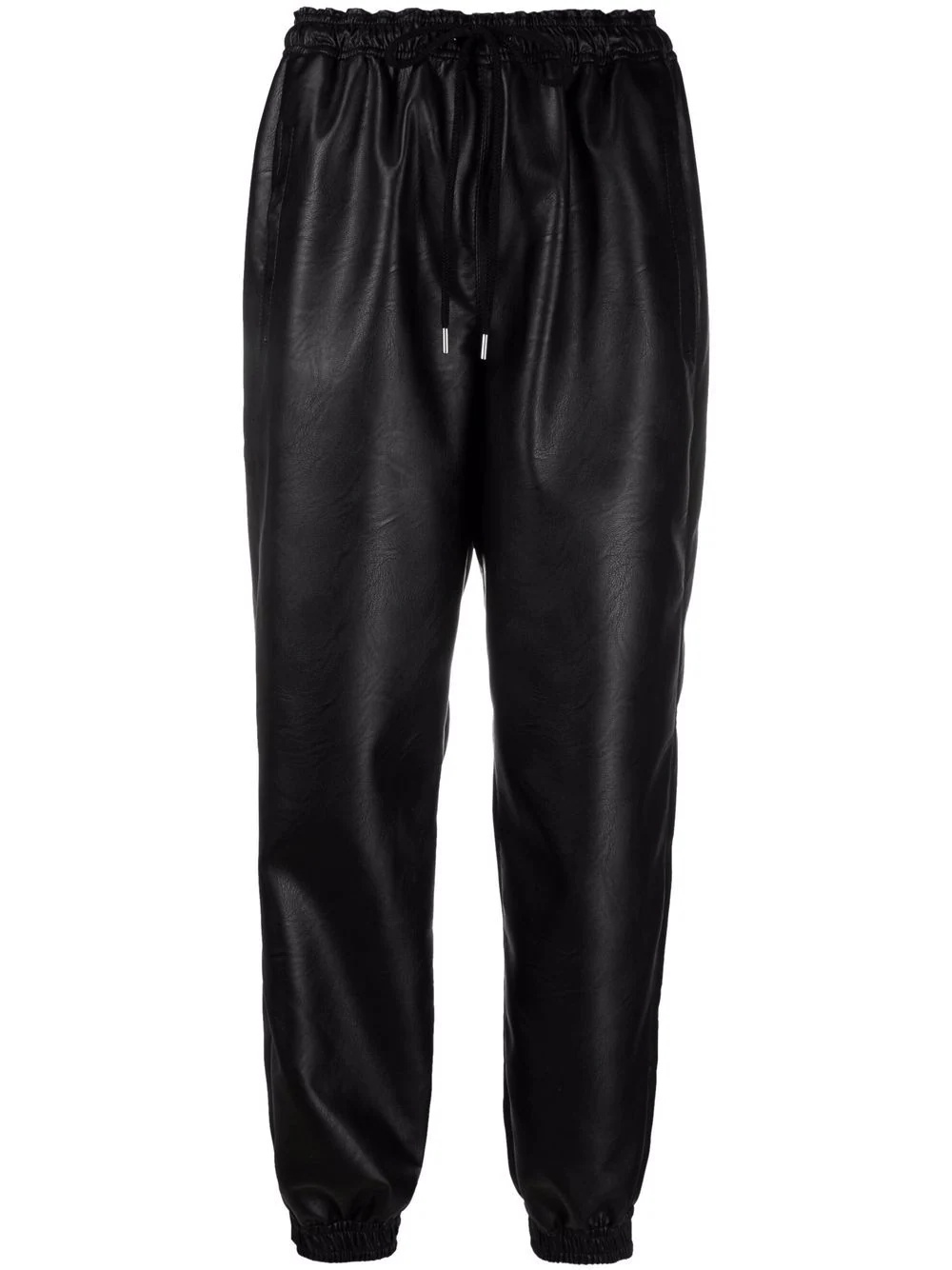 Kira faux leather trousers Stella McCartney fashions contemporary offerings for the modern woman without eschewing the ethical ambitions that the brand was built on. Made from the brand's signature faux leather, these Kira track pants showcase the brand's mastery of the sporty aesthetic, boasting elasticated trims and a drawstring waistband. Highlights - Black - Faux leather - Elasticated drawstring waistband - Two side slit pockets - Elasticated ankles Made in Italy Composition Polyurethane 100%, Viscose 100% SIZE & FIT Model measurements Height 5 ft 10 in(1.77 m) Bust/Chest 32.67 in(83 cm) Hips 35.43 in(90 cm) Waist 23.62 in(60 cm) Measurement INSIDE LEG 27.16 in(69 cm) HIPS 40.15 in(102 cm) WAIST 28.34 in(72 cm) FittingInformation This piece fits true to size. We recommend you get your regular size Designed to be loose over the leg with a fitted waist and hem Made with a mid-weight non-stretch fabric Washing instructions Dry Clean Only