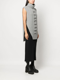 knitted sleeveless top Highlights - Medium grey - Wool-cashmere blend - Knitted construction - High neck - Sleeveless - Asymmetric hem Imported Composition Cashmere 95%, Wool 5% SIZE & FIT Model measurements Height 5 ft 11 in(1.8 m) Bust/Chest 33.07 in(84 cm) Hips 37.4 in(95 cm) Waist 25.19 in(64 cm) FittingInformation Designed to be unstructured, offering a loose fit throughout Made with a midweight knit, this piece offers some stretch This piece fits true to size – take your usual size Washing instructions Dry Clean Only