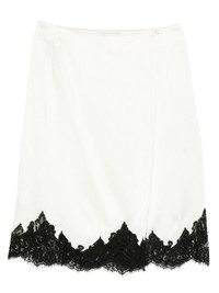lace-trim satin midi skirt Highlights - Light beige - Satin - Lace trim - A-line Made in Italy Composition Acetate 73%, Cotton 69%, Polyamide 31%, Viscose 27% SIZE & FIT Model measurements Height 5 ft 10 in(1.78 m) Bust/Chest 33.46 in(85 cm) Hips 36.22 in(92 cm) Waist 23.22 in(59 cm) Washing instructions Dry Clean Only