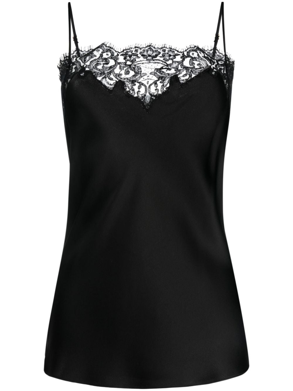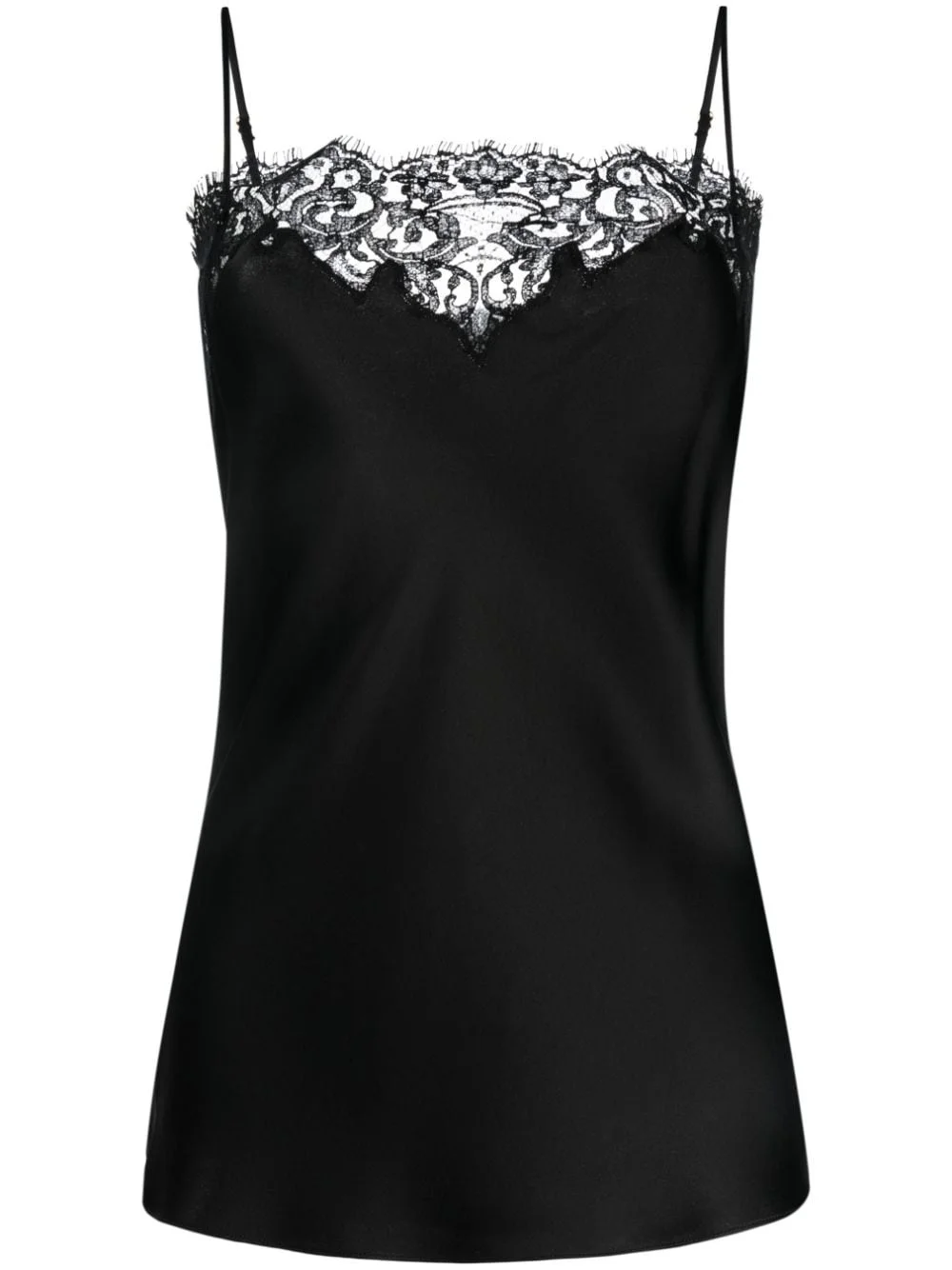 lace-trimmed cami top This Stella McCartney cami top speaks to the brand's refined side. Crafted from black satiny fabric, it is held by adjustable spaghetti straps and framed with brand-exclusive Guipure lace trim, creating a vespertine allure. Highlights - Black - Satin finish - Lace trim - Square neck - Adjustable spaghetti straps - Straight hem Made in Italy Composition Cotton 69%, Acetate 64%, Viscose 36%, Polyamide 31% SIZE & FIT Model measurements Height 5 ft 10 in(1.79 m) Bust/Chest 31.1 in(79 cm) Hips 35.03 in(89 cm) Waist 24.01 in(61 cm) Measurement LENGTH 18.89 in(48 cm) WAIST 28.34 in(72 cm) BUST 29.92 in(76 cm) FittingInformation Designed for a slim fit that sits just away from the body offering a close yet comfortable fit The adjustable shoulder straps allow for a preferred fit when worn Made from a lightweight non-stretch fabric This piece fits true to size – take your usual size