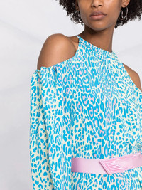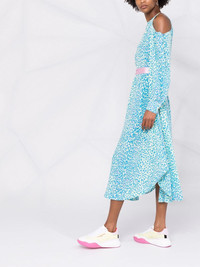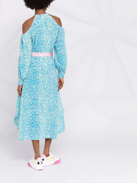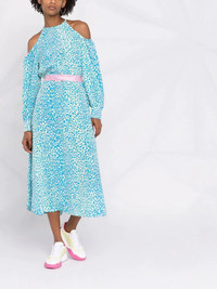 leopard-print belted dress A leopard-print design is given a twist here, thanks to a bold blue and pink colourway. This speaks to the creativity at the heart of Stella McCartney. Highlights - Blue/pink - Cotton - Leopard print - Halterneck - Cold-shoulder design - Long sleeves - Belted waist - Mid-length Made in Italy Composition Cotton 100% SIZE & FIT Model measurements Height 5 ft 11 in(1.8 m) Bust/Chest 31.49 in(80 cm) Hips 35.82 in(91 cm) Waist 24.8 in(63 cm) Measurement HIPS 46.45 in(118 cm) WAIST 37.79 in(96 cm) Washing instructions Dry Clean Only