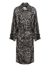 leopard-print belted trench coat Highlights - Ash grey - Leopard print - Double-breasted fastening - Belted waist - Long sleeves - Buttoned cuffs Imported Composition Polyamide 100% Washing instructions Read Manufacturer Guidelines
