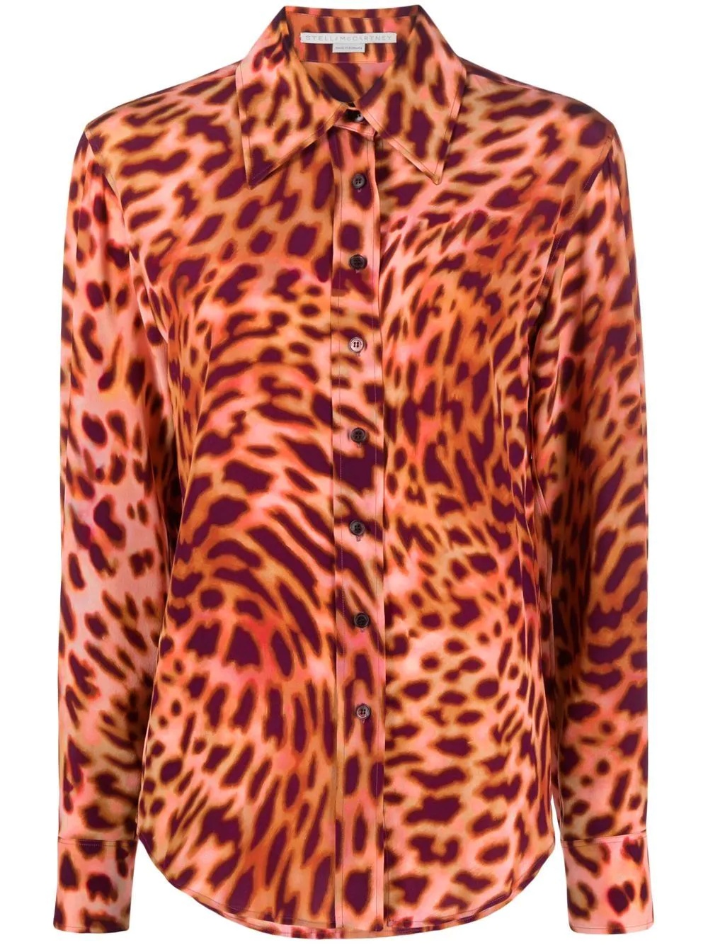 leopard-print silk shirt Stella McCartney looks to the animal kingdom for inspiration in AW22. The London-based designer presents this shirt, defined by an all-over leopard print across a silk construction. Highlights - Martini pink silk leopard-print silk shirt from stella mccartney featuring all-over leopard print, classic collar, concealed front fastening, curved hem and long sleeves. . Imported Composition Silk 100% SIZE & FIT Model measurements Height 5 ft 11 in(1.8 m) Bust/Chest 31.49 in(80 cm) Hips 35.43 in(90 cm) Waist 25.19 in(64 cm) FittingInformation This piece fits true to size. We recommend you get your regular size Cut for a loose fit Made with a lightweight non-stretch fabric Washing instructions Dry Clean Only