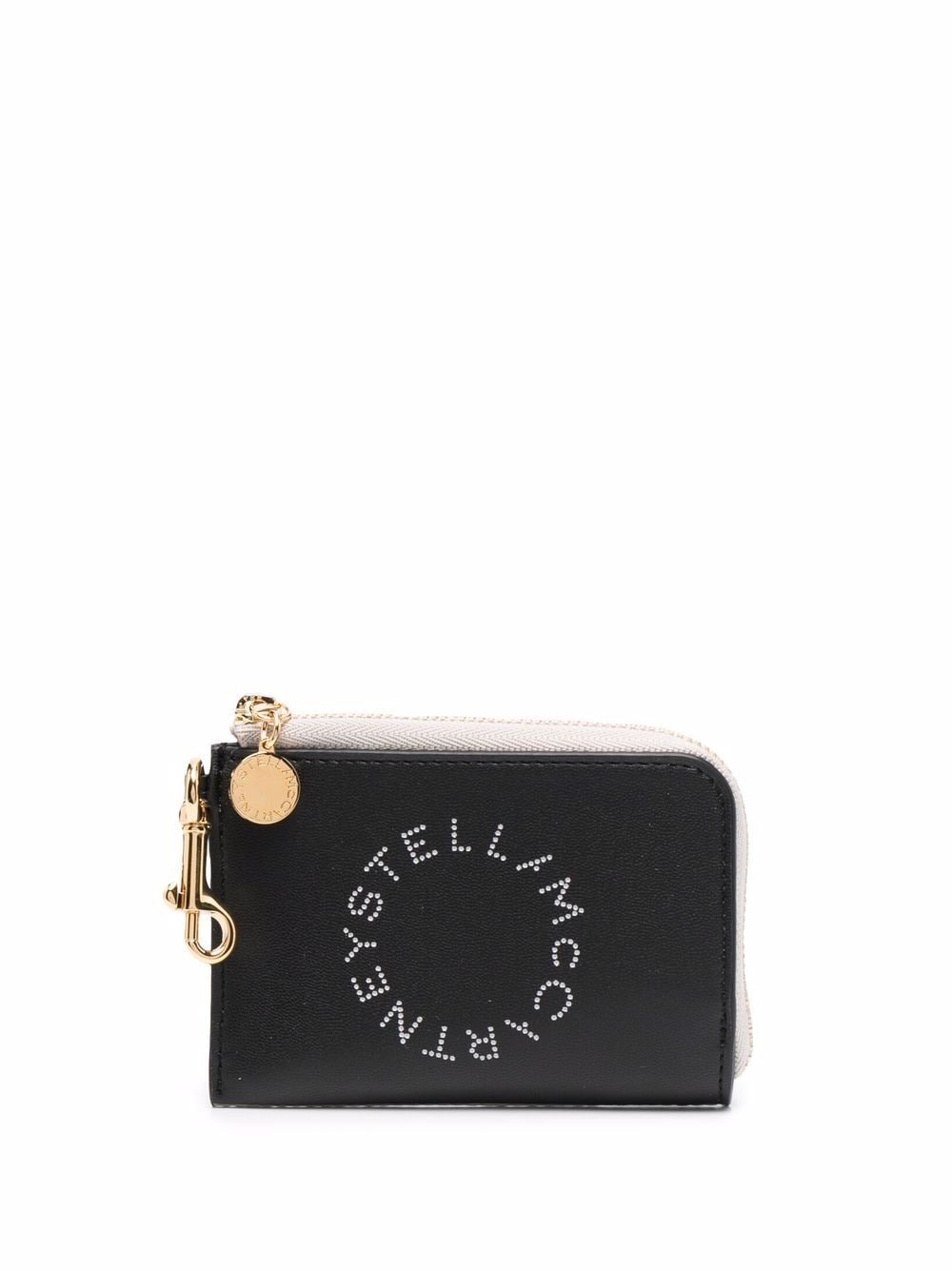 logo coin zip-pouch Stella McCartney continues to prioritise constructing their accessories with sustainable practices in mind. This logo coin zip-pouch doesn't use animal-based materials and proudly brands the wallet with a logo stamp. Highlights - Black/white - Keyring attachment - Lobster claw fastening - All-around zip fastening - Internal logo stamp - Logo charm Made in Italy Composition Outer: Polyurethane 100% SIZE & FIT Measurement LENGTH 4.33 in(11 cm) WIDTH 3.14 in(8 cm)