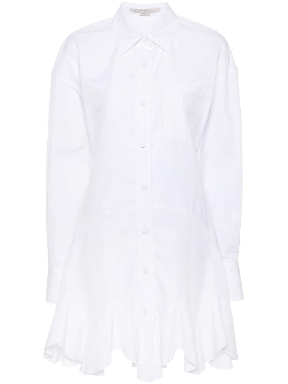 logo-embroidered poplin mini dress Highlights - White - Cotton - Poplin texture - Embroidered logo at the chest - Classic collar - Long sleeves - Buttoned cuffs - Chest patch pocket - Flared hem - Unlined - Asymmetric hem - Thigh-length - Front button fastening Made in Italy Composition Cotton 100% SIZE & FIT Model measurements Height 5 ft 10 in(1.77 m) Bust/Chest 32.28 in(82 cm) Hips 35.03 in(89 cm) Waist 25.19 in(64 cm) FittingInformation Designed for a loose fit at the chest with a close fit over the waist and hips Made from a midweight non-stretch fabric This piece fits true to size – take your usual size
