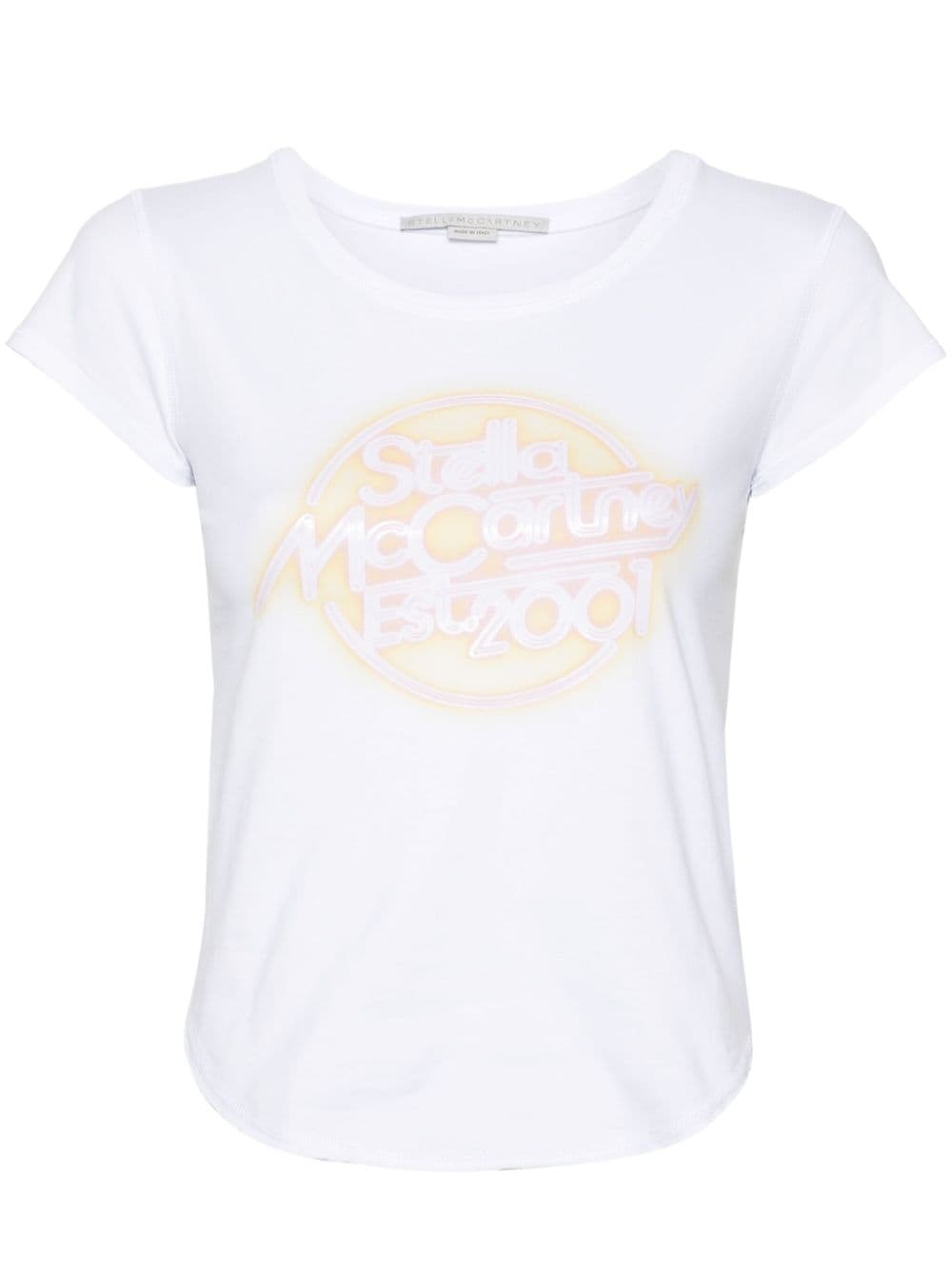 logo-print cotton T-shirt Highlights - White - Cotton - Jersey texture - Ribbed crew neck - Cap sleeves - Logo print to the front - Curved hem Made in Italy Composition Cotton 100% Washing instructions Machine Wash