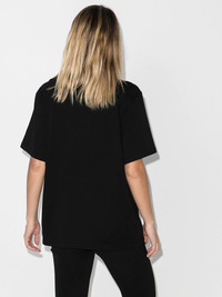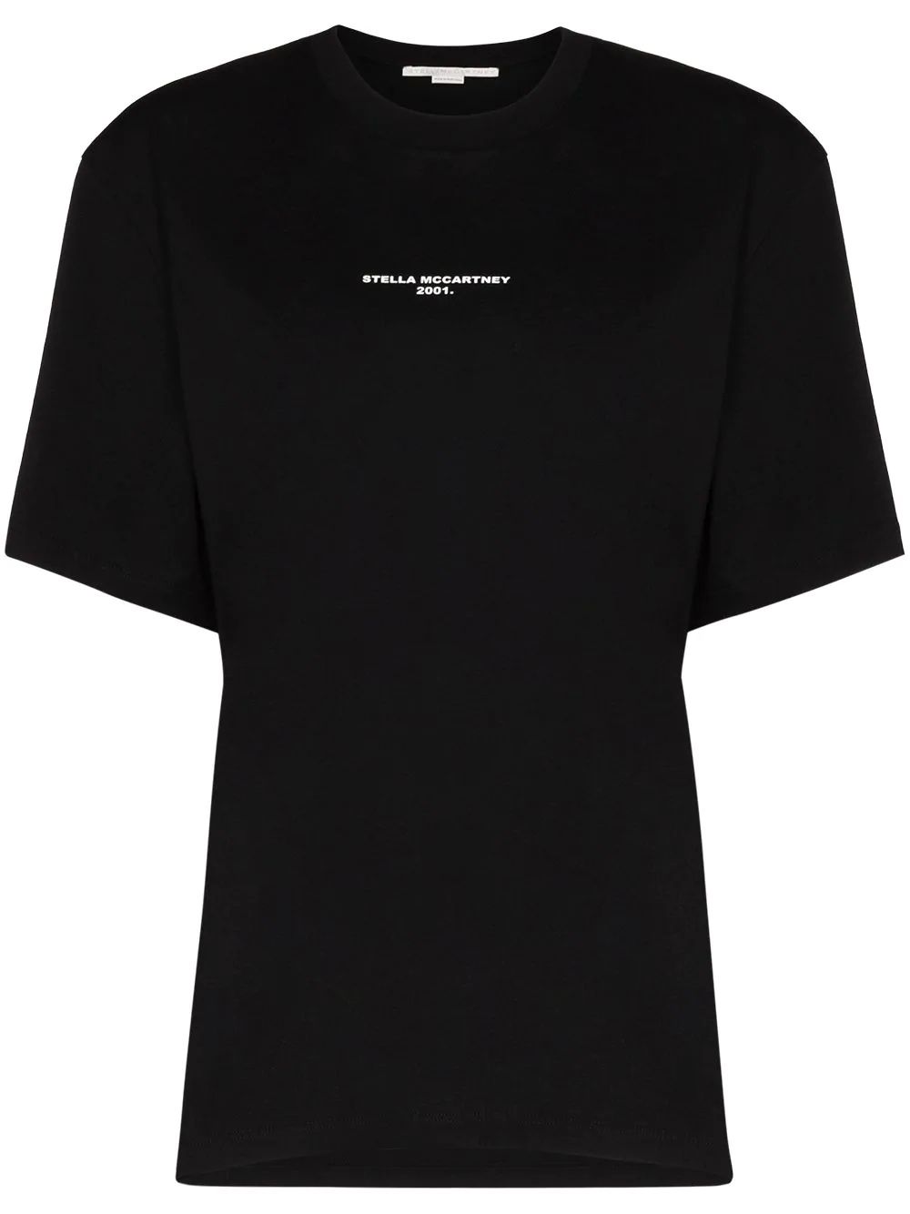 logo-print short-sleeve T-shirt Introducing the non-basic basic. In fact, there's nothing ordinary about this T-shirt from Stella McCartney; in a jet black hue with a logo print at the chest, this piece defines an outfit in just one smooth move of pure cotton. Make an impression...but make it effortlessly. Highlights - Black - Cotton - Logo print at the chest - Round neck - Short sleeves - Relaxed shape Imported Composition Cotton 100% SIZE & FIT Model measurements Height 5 ft 10 in(1.77 m) Bust/Chest 32.28 in(82 cm) Hips 36.22 in(92 cm) Waist 24.4 in(62 cm) FittingInformation This piece fits true to size. We recommend you get your regular size Cut for a loose fit Made with a mid-weight fabric