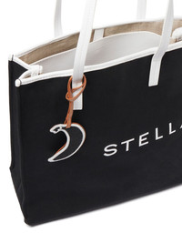 logo-print tote bag Highlights - Black/white - Canvas - Logo print to the front - Logo print to the rear - Open top - Two long top handles - Moon charm - Main compartment Made in Italy Composition Outer: Abaca 100%, Polyamide 100%