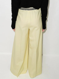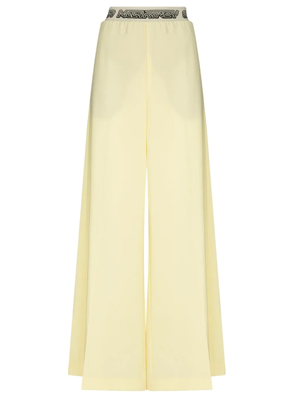 logo-waistband palazzo trousers Stella McCartney transfers its penchant for tailoring into casualwear, marrying soft fabrics with refined silhouettes. Made from yellow wool, these palazzo trousers are designed with a branded elasticated waistband for maximum comfort. Highlights - Yellow - Wool - Elasticated waistband - Logo waistband - Palazzo design - Two side slit pockets - Floor-length Imported Composition Outer: Wool 100% Lining: Viscose 52%, Cotton 48% SIZE & FIT Model measurements Height 5 ft 11 in(1.8 m) Bust/Chest 31.49 in(80 cm) Hips 36.22 in(92 cm) Waist 25.59 in(65 cm) Measurement INSIDE LEG 31.88 in(81 cm) HIPS 40.15 in(102 cm) WAIST 27.55 in(70 cm) FittingInformation This piece fits true to size. We recommend you get your regular size Designed for a loose fit with a close fit at the waist Made with a mid-weight fabric Washing instructions Dry Clean Only
