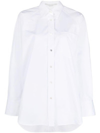 long-sleeve cotton shirt Highlights - White - Cotton - Spread collar - Front button fastening - Chest patch pocket - Long sleeves - Buttoned-cuff sleeves - Curved hem Imported Composition Cotton 100% SIZE & FIT Model measurements Height 5 ft 10 in(1.77 m) Bust/Chest 31.49 in(80 cm) Hips 35.03 in(89 cm) Waist 23.22 in(59 cm) Measurement LENGTH 31.1 in(79 cm) FittingInformation Designed to be unstructured, offering a loose fit throughout Made from a midweight non-stretch fabric This piece fits true to size – take your usual size