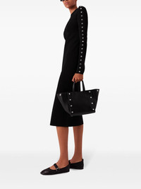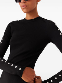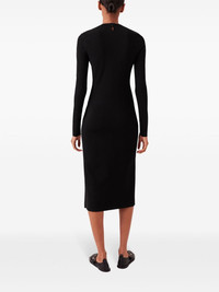 long-sleeve leg-slit dress Highlights - Black - Stretch-design - Long sleeves - Front slit - Rear button fastening - Round neck - Stud embellishment - Mid-calf length Made In Italy Composition Viscose 83%, Polyester 17%