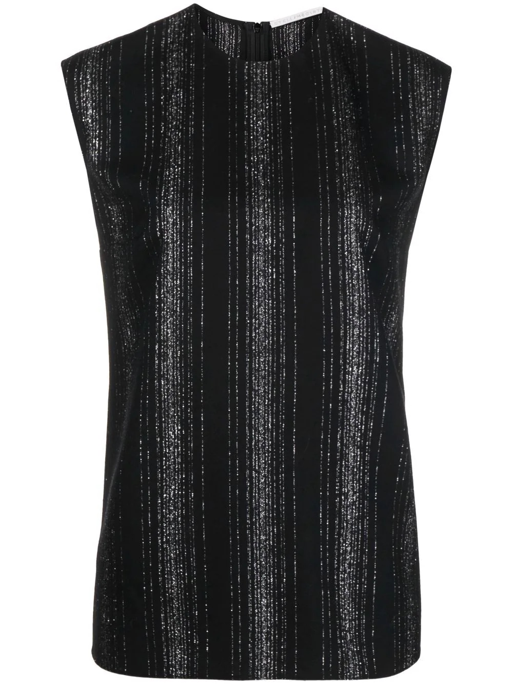 lurex striped sleeveless blouse Spun from a soft blend of wool, this sleeveless top from Stella McCartney's AW22 collection is given a playful touch often associated with the brand thanks to metallic vertical stripes. Highlights - Black - Wool blend - Lurex detailing - Vertical stripe pattern - Sleeveless - Round neck - Concealed rear zip fastening Made in Italy Composition Wool 94%, Polyester 6% SIZE & FIT Model measurements Height 5 ft 9 in(1.75 m) Bust/Chest 32.67 in(83 cm) Hips 36.22 in(92 cm) Waist 24.8 in(63 cm) Washing instructions Dry Clean Only