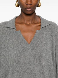 melange polo sweater Highlights - Medium grey - Wool-cashmere blend - Knitted construction - Melange effect - Polo collar - Ribbed v-neck - Drop shoulder - Long sleeves - Ribbed cuffs and hem Imported Composition Cashmere 75%, Wool 25% SIZE & FIT Model measurements Height 5 ft 10 in(1.78 m) Bust/Chest 31.49 in(80 cm) Hips 37 in(94 cm) Waist 23.62 in(60 cm) FittingInformation Designed for an oversized fit, offering additional room throughout Made with a lightweight knit, this piece offers some stretch This piece fits true to size – take your usual size