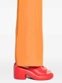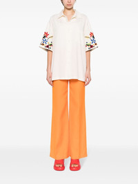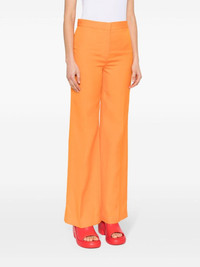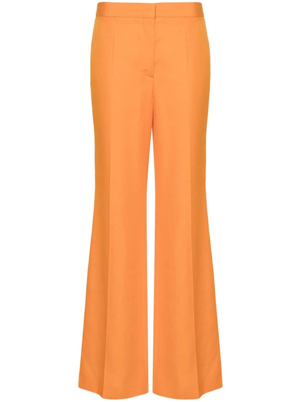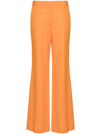 mid-rise flared trousers Highlights - Pumpkin orange - Slub texture - Two coin pockets to the front - Rear welt pocket - Tonal stitching - Pressed crease - Flared - Concealed front button, hook and zip fastening Imported Composition Viscose 100% SIZE & FIT Model measurements Height 5 ft 11 in(1.8 m) Bust/Chest 33.07 in(84 cm) Hips 37 in(94 cm) Waist 25.59 in(65 cm) Measurement FRONT RISE 11.02 in(28 cm) HIPS 32.28 in(82 cm) WAIST 28.34 in(72 cm) FittingInformation Designed with a flared hem, these trousers allow for a close fit at the waist with a slim fit over the leg and widening towards the hem Made from a midweight non-stretch fabric This piece fits true to size – take your usual size Washing instructions Dry Clean Only