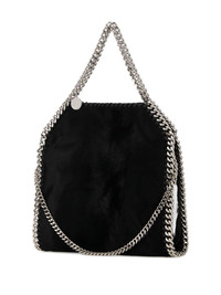 mini Falabella tote bag Highlights - Black - Velvet texture - Chain top handle - Silver-tone metal finish Made in Italy Composition glitter 100%, silver 100%, Fabric 100%