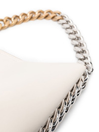 mini Frayme tote bag Stella McCartney updates its Frayme bag in an understated ivory hue. Crafted from supple vegan leather, it's punctuated with silver and gold-tone curb-chain links. Highlights - Ivory white - Artificial leather - Single chain-link top handle - Chain-link detailing - Whipstitch detailing - Adjustable detachable shoulder strap Made in Italy Composition Outer: Polyester 70%, Polyurethane 30% SIZE & FIT Model measurements Height 5 ft 10 in(1.77 m) Bust/Chest 32.28 in(82 cm) Hips 35.03 in(89 cm) Waist 25.19 in(64 cm) Measurement DEPTH 4.72 in(12 cm) HANDLE 5.9 in(15 cm) HEIGHT 7.87 in(20 cm) STRAP 21.25 in(54 cm) WIDTH 6.49 in(16.5 cm) Washing instructions Read Manufacturer Guidelines