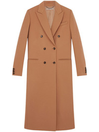 notched-lapel wool coat Highlights - Camel brown - Wool - Notched lapels - Double-breasted button fastening - Chest welt pocket - Two front jetted pockets - Long sleeves - Buttoned-cuff sleeves - Straight hem - Mid-length Imported Composition Wool 100% SIZE & FIT FittingInformation Designed for a boxy fit, intended for a loose fit throughout The internal shoulder pads offer a structured shape Made from a midweight non-stretch fabric This piece fits true to size – take your usual size