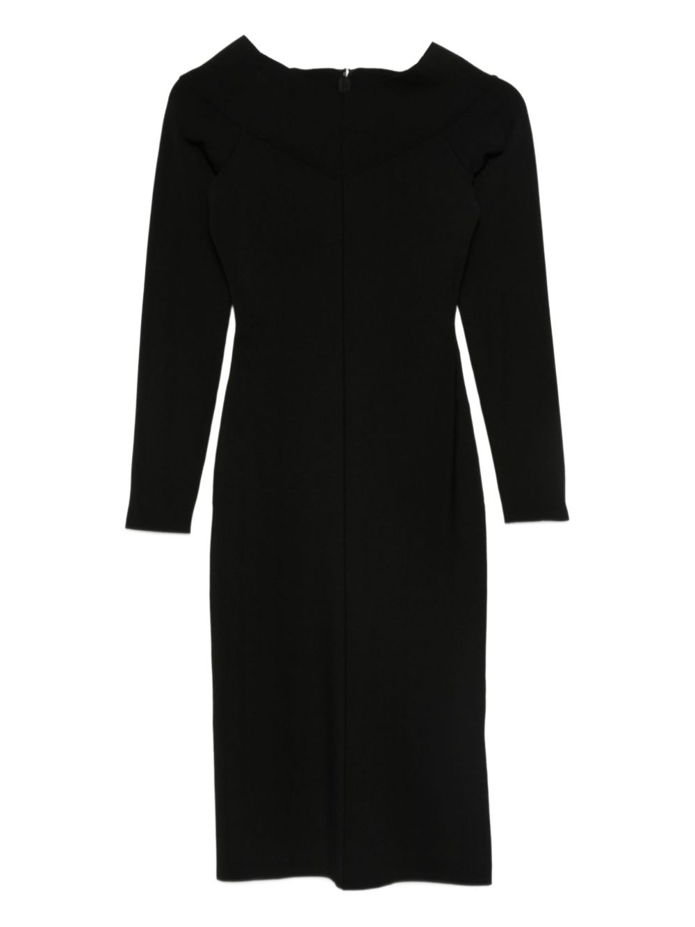 off-shoulder midi dress Highlights - Black - Off-shoulder neckline - Long sleeves - Fitted bodice - Centre seam detail - Midi length Made in Italy Composition Viscose 83%, Polyester 17% SIZE & FIT Model measurements Height 5 ft 10 in(1.78 m) Bust/Chest 33.46 in(85 cm) Hips 36.22 in(92 cm) Waist 23.22 in(59 cm)