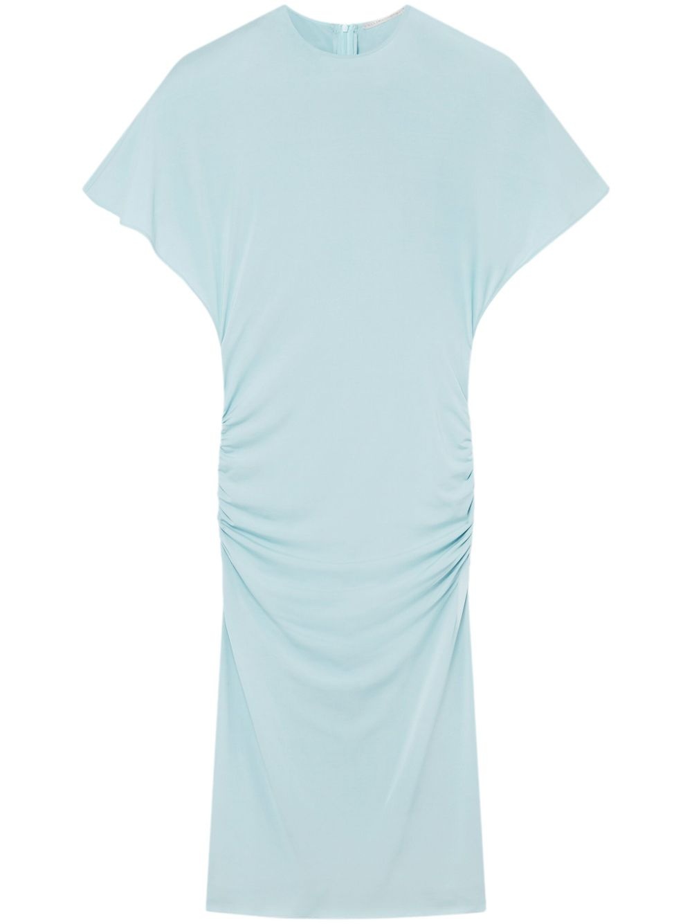 padded-shoulder short-sleeve midi dress Highlights - Light blue - Shoulder pads - Short sleeves - Rear zip fastening - Crew neck - Ruched detailing - Pencil silhouette - Calf-length Made in Italy Composition Viscose 94%, Elastane 6% Washing instructions Dry Clean Only
