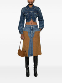 Blue & Tan Mixed Denim & Faux-Suede Midi Skirt