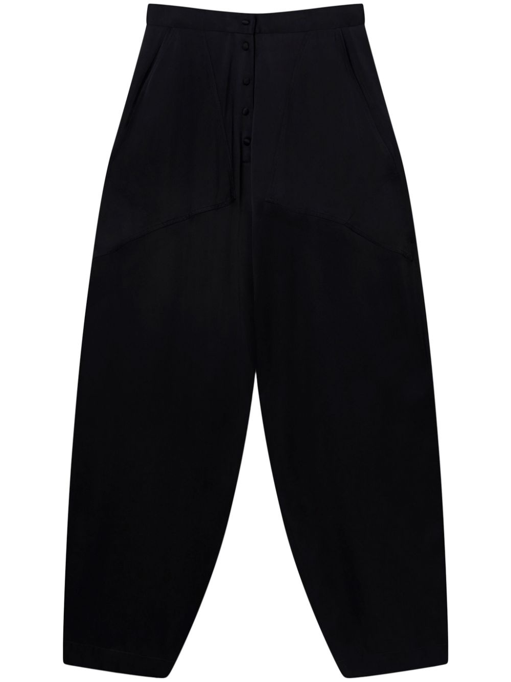 panelled satin tapered trousers Highlights - Black - Recycled viscose blend - Satin finish - Panelled design - Decorative stitching - Tapered leg - Front button fastening - Two side slash pockets Made in Italy Composition Acetate 59%, Viscose 41%