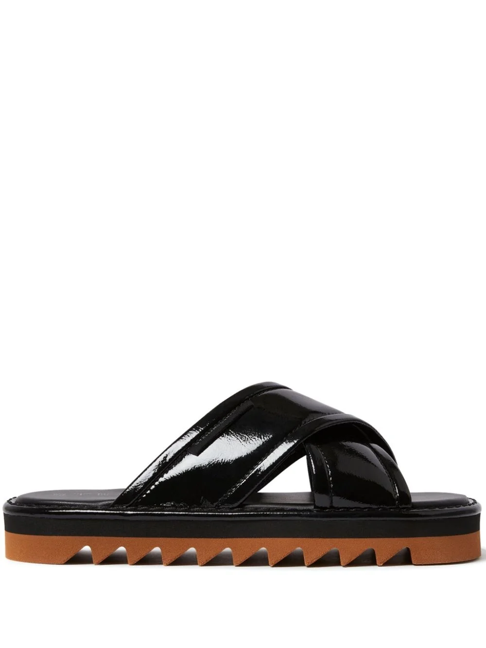 patent-finish slides Highlights - Black - Patent finish - Open toe - Rubber sole - Slip-on style Made in Italy Composition Other fibres 100%